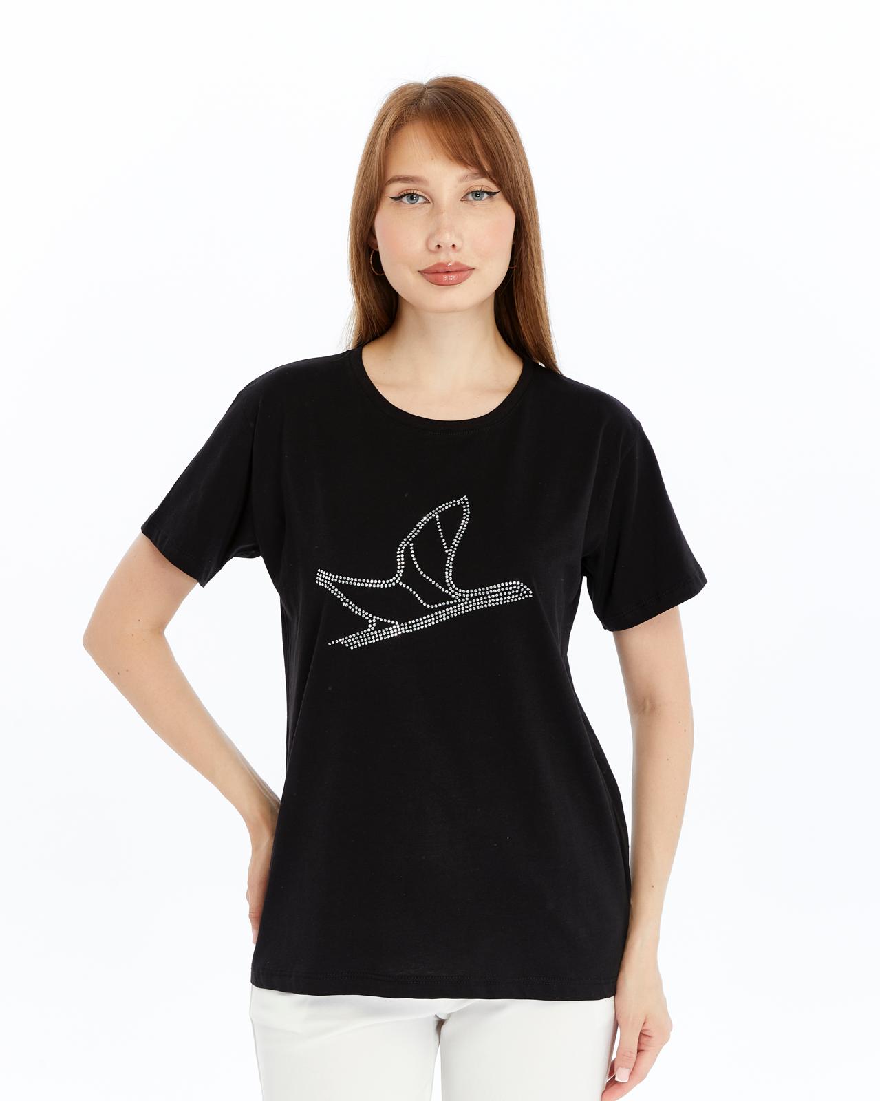 Bisiklet Yaka Siyah Taş Desenli Tişört